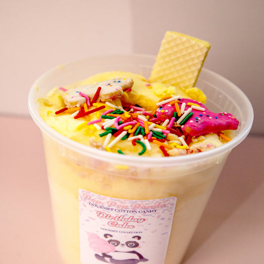 STUFFED Birthday Cake Cotton Candy FILLED with frosted animal cookies, vanilla wafers and topped with sprinkles | 5 oz